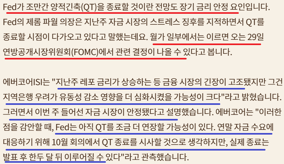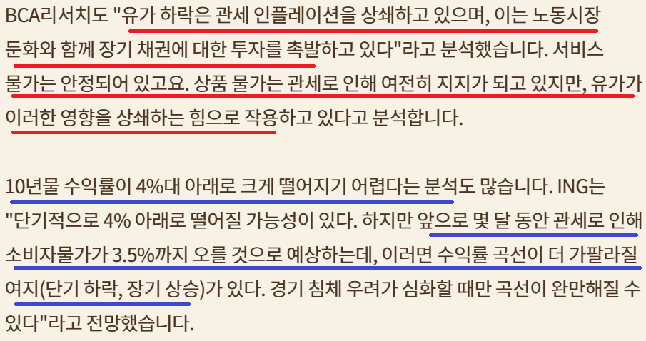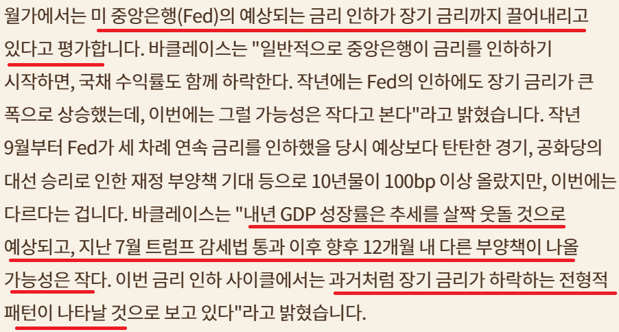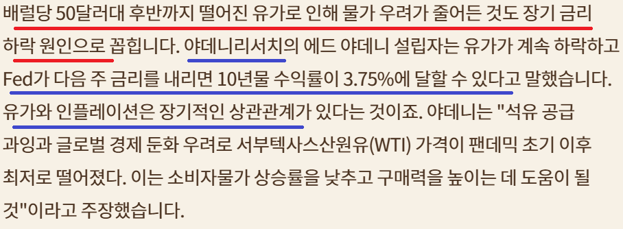 장기채 채권 금리 상승; 2024년과 달라; 유가하락의 영향이 큰 듯; Fed의 QT 중단과 기대감도 한 몫