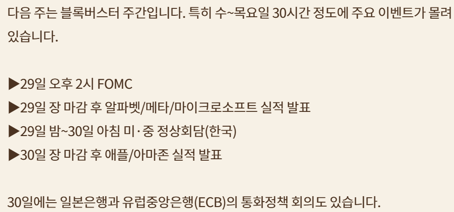 다음주 빅테크 실적 발표, 미-중 정상회담 (APEC) 등 주요 이벤트