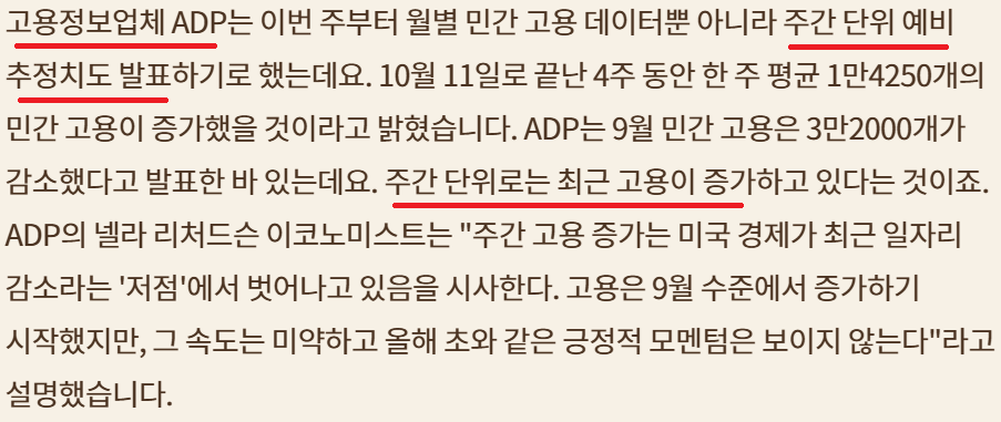 ADP 주간 단위 예비 추정치; 최근 고용 증가