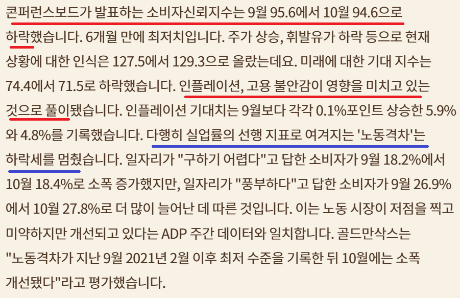 컨퍼런스보드 소비자 신뢰지수 하락; 고용, 인플레 우려