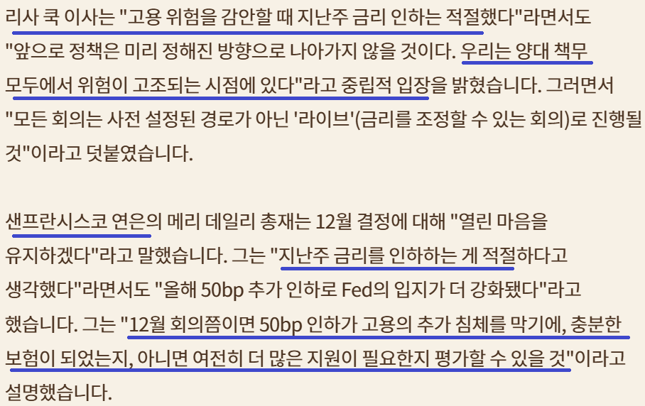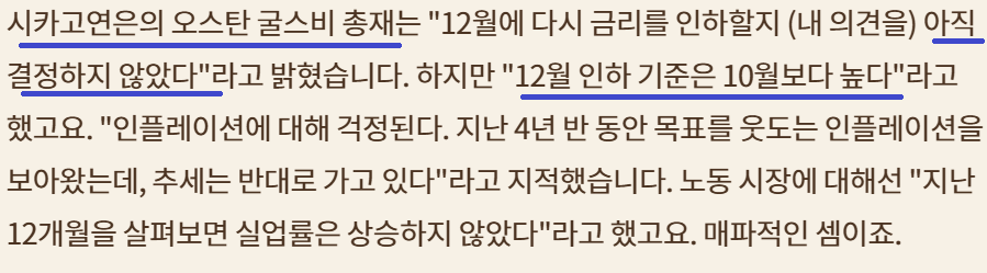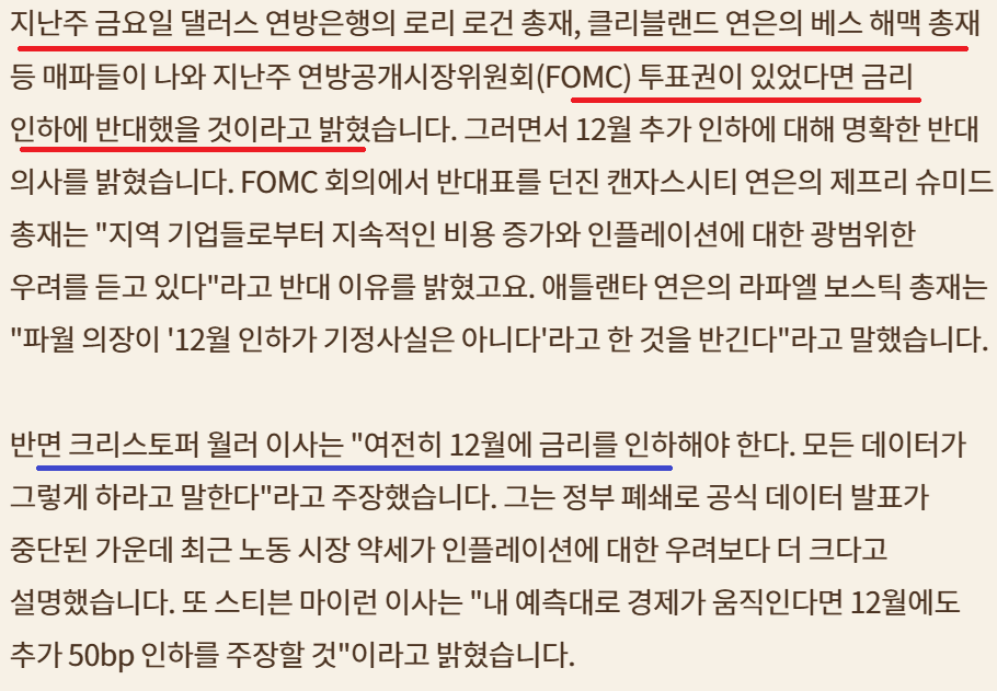 12월 FOMC 금리 인하 안개 속으로; 연준 의원들 간 의견차