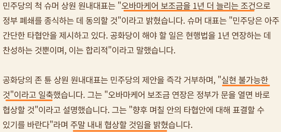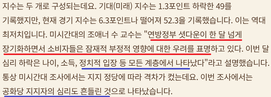 연방정부 셧다운 지속으로 소비심리 얼어 붙어; 주말간 공화당-민주당 물밑 작업을; 추수 감사절 연휴 전 해결해야하는 정치적 압박도