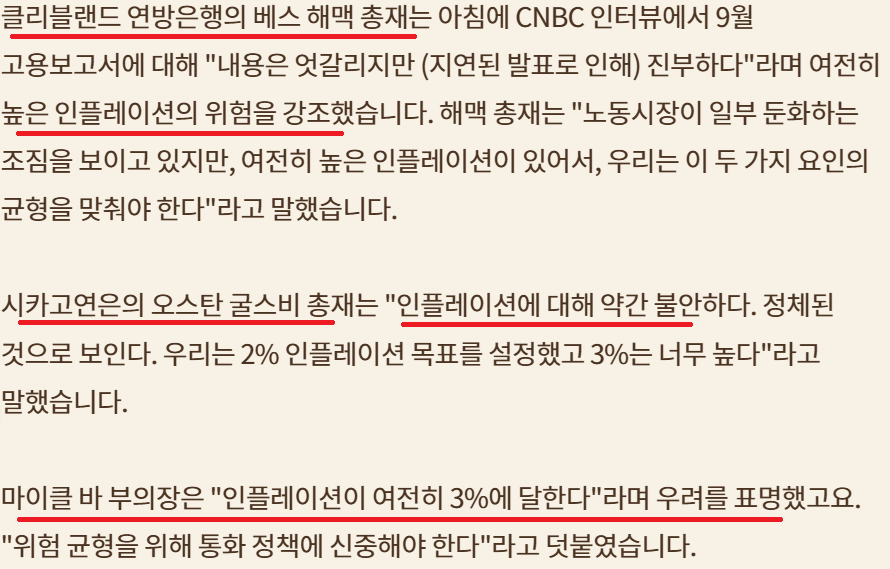 9월 고용 보고서 일자리는 증가했으나, 이전 수치 조정 & 실업률 증가; FED 내 기준금리 인하에 대한 의견은 계속 나뉘어질듯