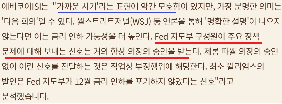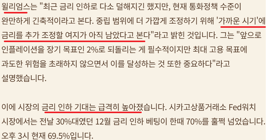 윌리엄스 총재 금리 인하 추가 발언; 하지만 중립금리에 대한 FED내 의견 반반으로