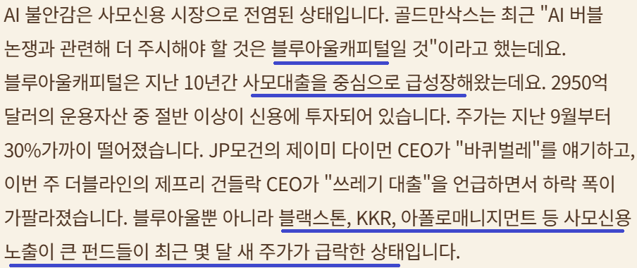 Gemini 3로 Open AI의 대마불사가 흔들릴수도; 자금조달 관련 사모대출의 우려도