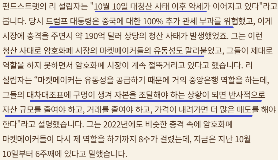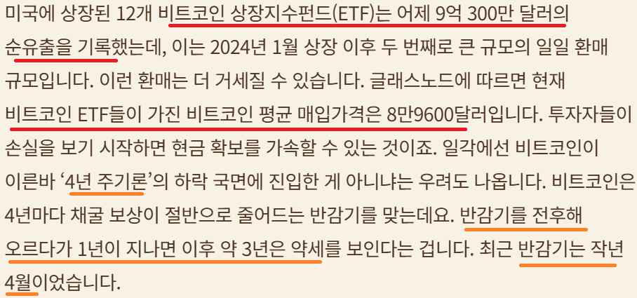 시장 유동성 말라 붙어 있는 듯; 비트코인 하락 지속;반감기 후 약세 국면?