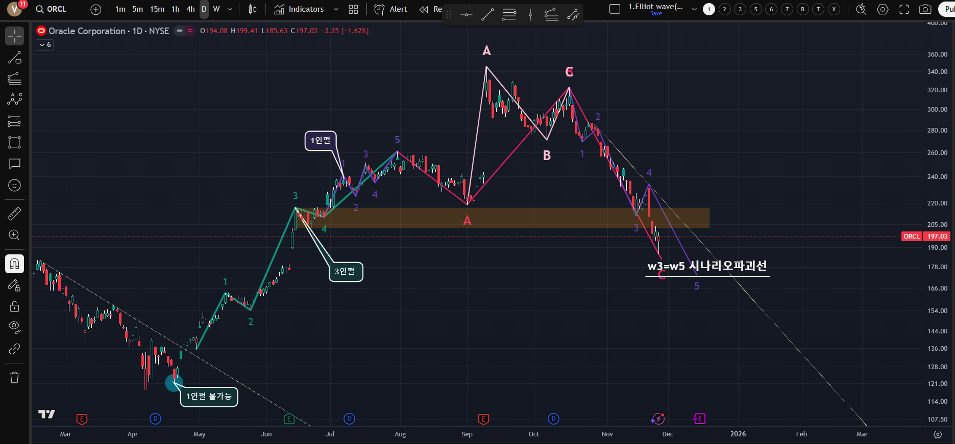 [하락중으로 3연펄 시나리오라면 최소 174$까지 하락 가능]