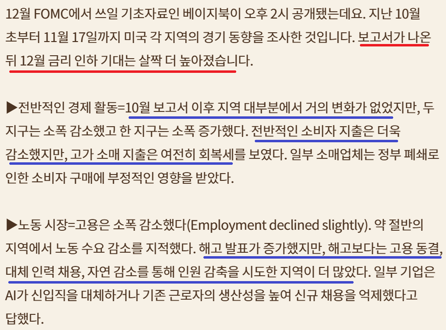 연준 베이지북; 고용 감소, 12월 금리 인하 기대감 커져; 차기 의장 후보 해싯 FED 금리 인하 촉구