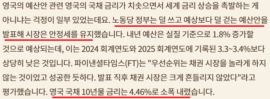 영국 노동당 덜쓰고 예상보다 덜 겆는 예산안 발표; 금리 시장 안정화
