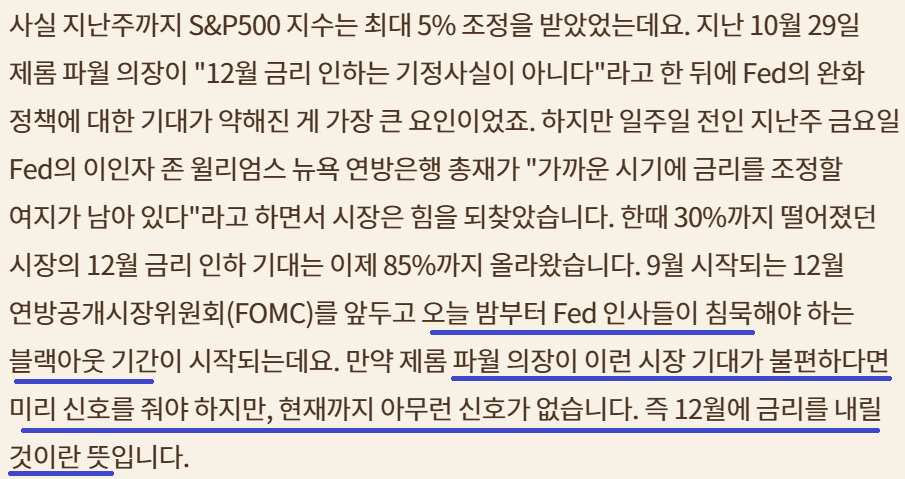 Fed 위원들 블랙아웃 기간 돌입; 12월 금리 인하 기대감 높아