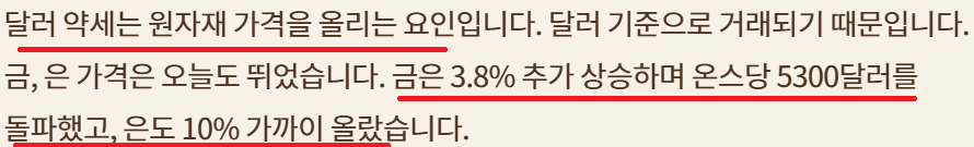[은 너무 급등...금보다 더 상승 추세가 있는것 처럼 보이는데..튤립인지 진짜인지는 두고 봐야할듯...약달러 기조와 개인 투자세가 지속된다면 더 튈 수도]
