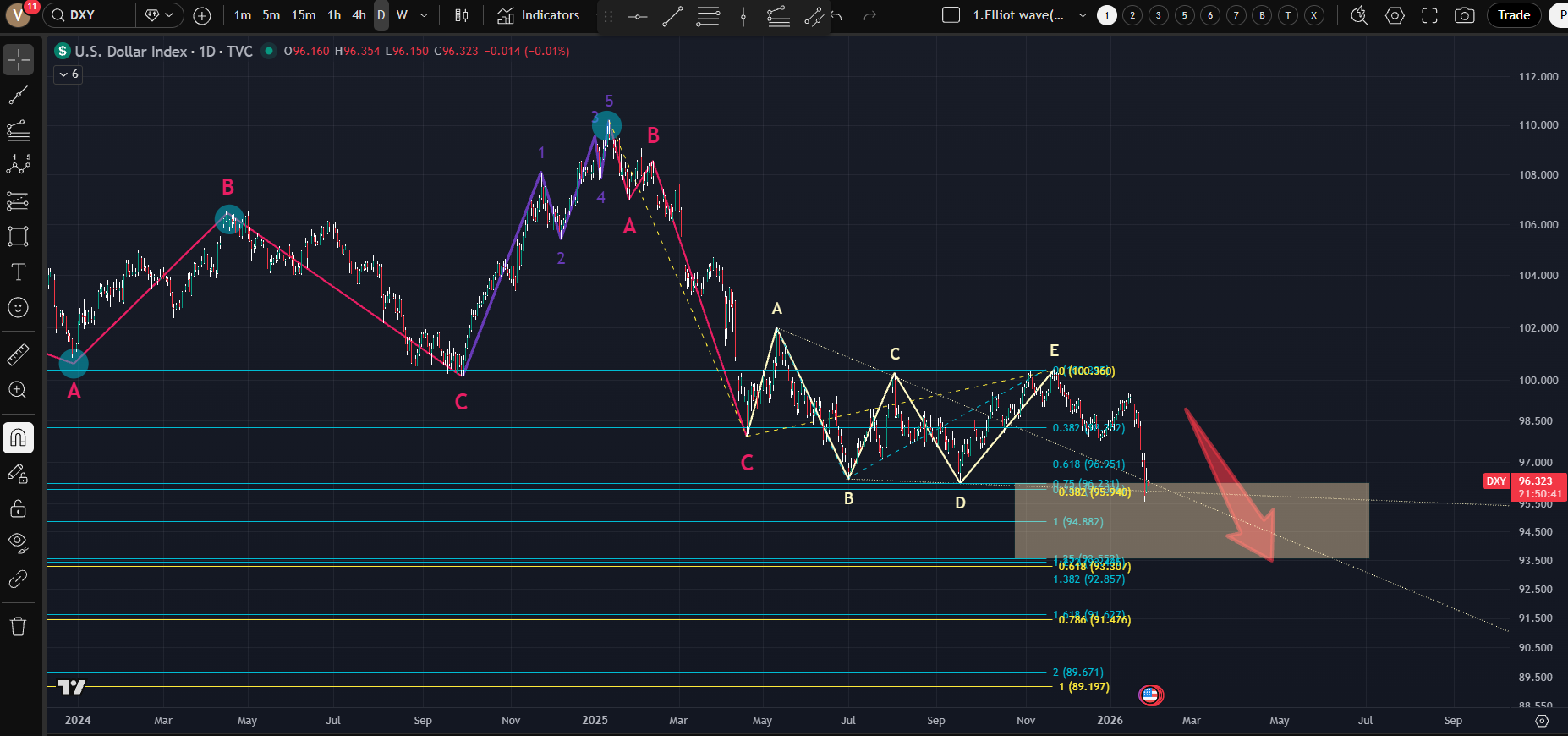 [베센트 희망과 달리 차트는 달러 약세쪽으로...삼각형 분출의 상단이 지지선이고 박스가 뚫리면 전문가 예상처럼 91~89까지 밀릴수도]