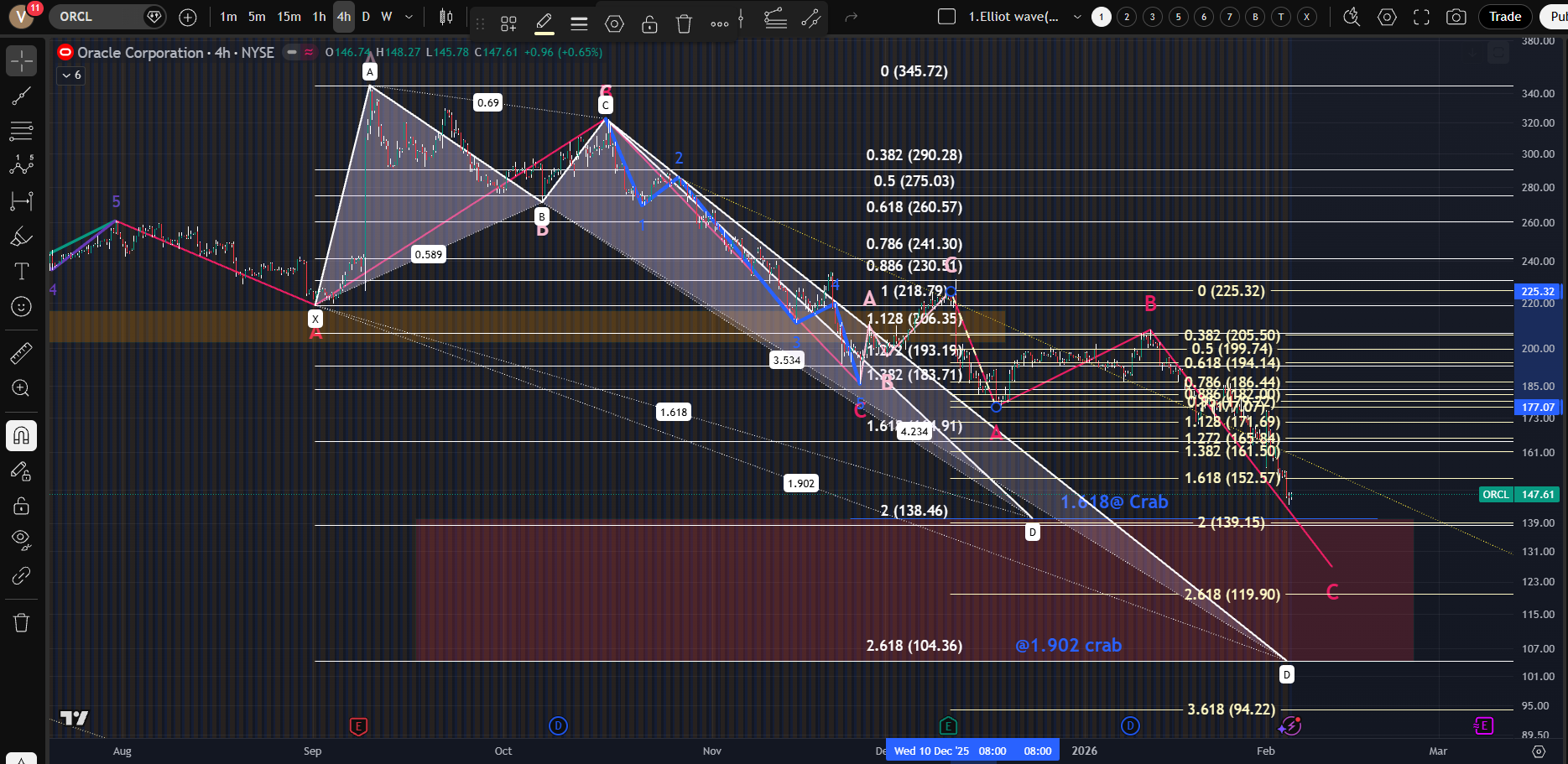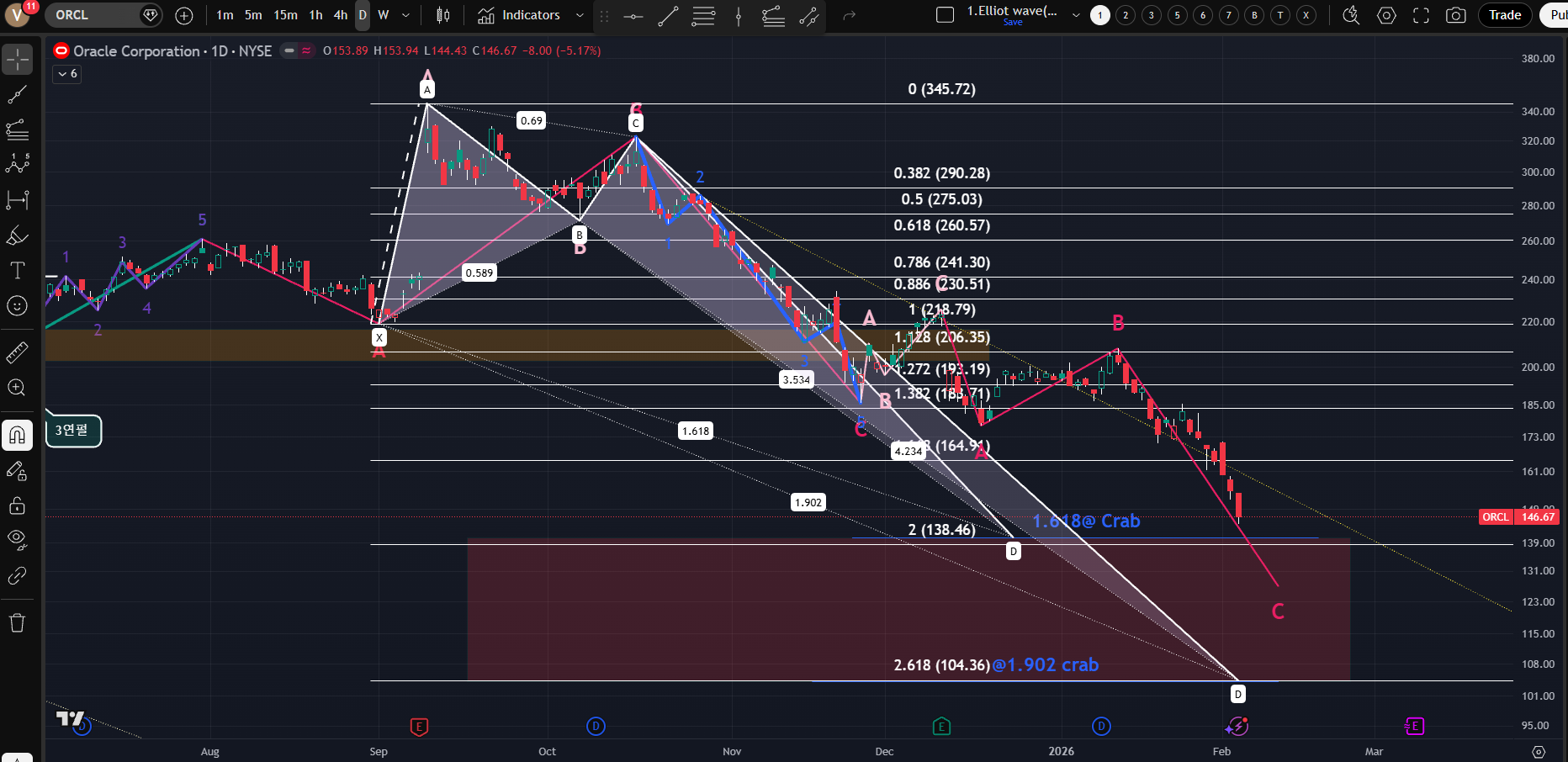 [1.618 Crab pattern과 다른 Fibonacci들이 겹치는 138~139$에서 반등을 기대해 본다.]