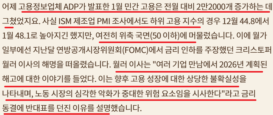 고용 시장 하방위험 증가; 윌러의 변명이 실제인가?; 채권 금리 하락/금,은,비트코인 모두 하락;순환매 지속;