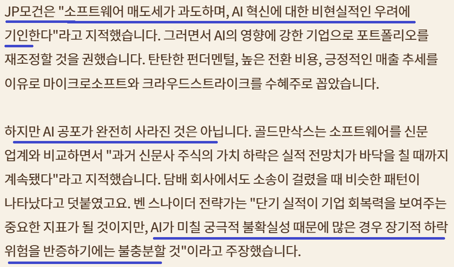 [ Software, AI 관련 민감 지표로 모니터링 중이다.]