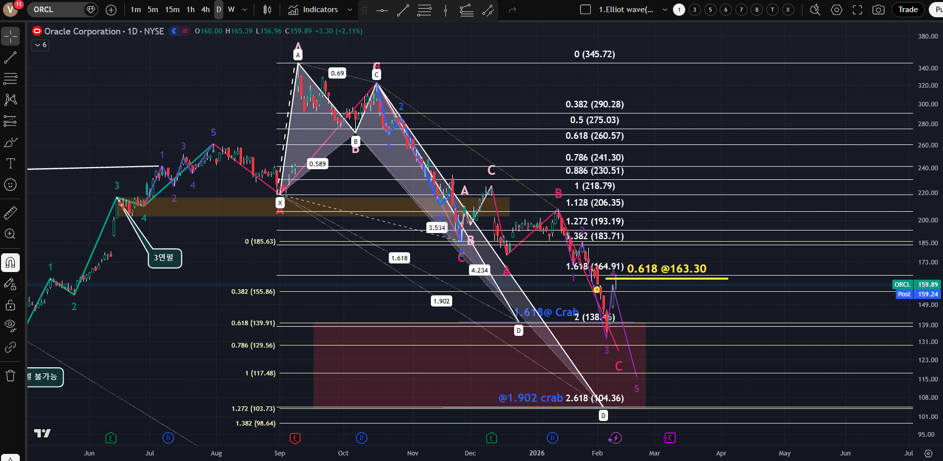 [Intraday에서 163.30을 터치 했다. 내려오는 파동의 0.618 되돌림이라면 하락이 멈춘걸까?]