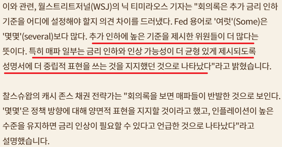 FOMC 매파적; 일부 위원 금리 인상 가능성 언급; 채권 금리 하락