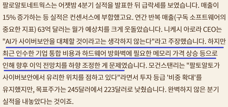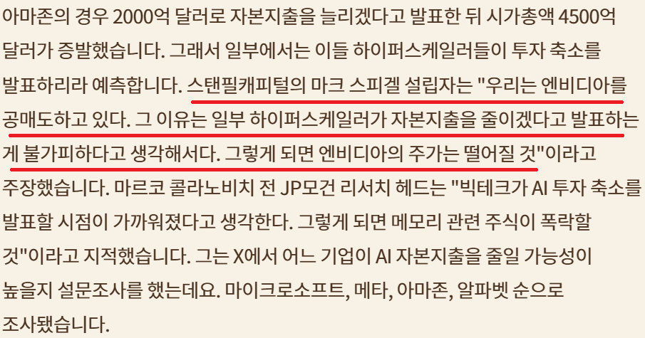 [오랜동안 횡보중이다. 실적 발표로 방향이 보일듯 하다. 기사의 지적처럼 하이퍼스케일러들의 과도한 투자가 문제라면 하락방향일수도 있다.]