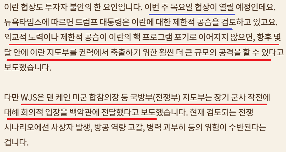 미국의 제한적 이란 공격 가능성 높아; 유가 상승 영향; 정치적 지형도도 함께 고려 (메르 블로그 참조)