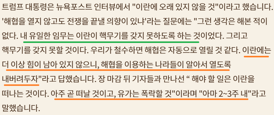 물타기(지상전)보다는 칼손절(정신승리)을 택한 트럼프?종전 여부는 아직 불확실(
