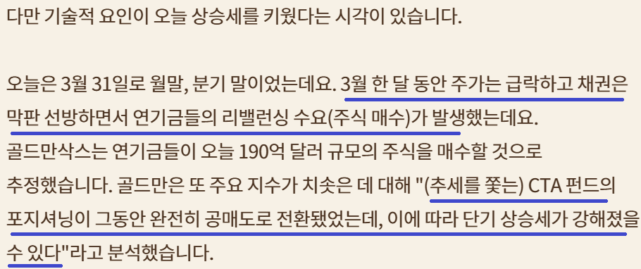 채권 금리는 하락 중; 주가 상승은 연기금 리밸런싱 영향도