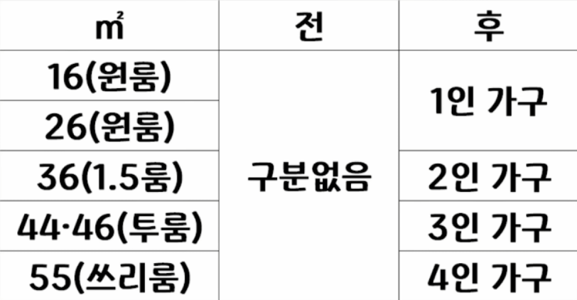 3인 가구에게는 원래 되던 쓰리룸 안돼!라고 못박은거나 다름없는데요.