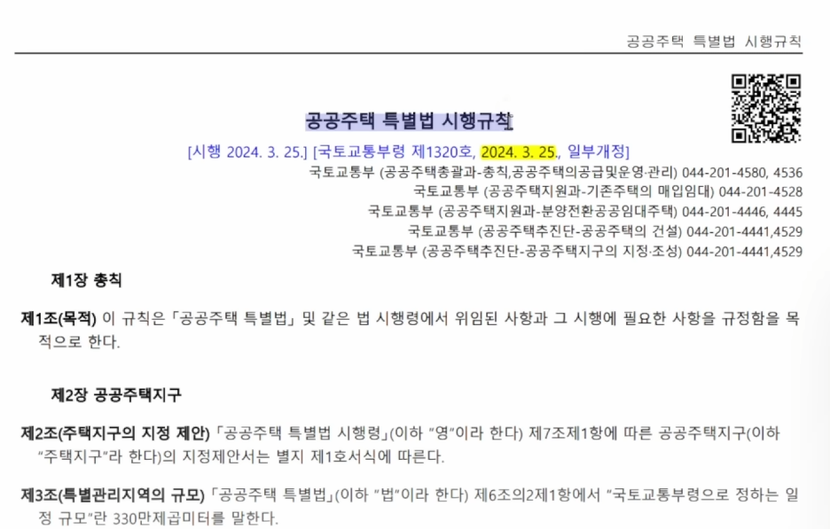 찾아보니 공공주택 특별법 시행규칙이라는 게 일부 개정되었고