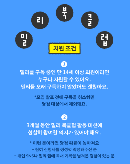 제가 좋아하는 플랫폼인 밀리의서재에서 북클럽 이벤트를 하길래 공유드립니다.